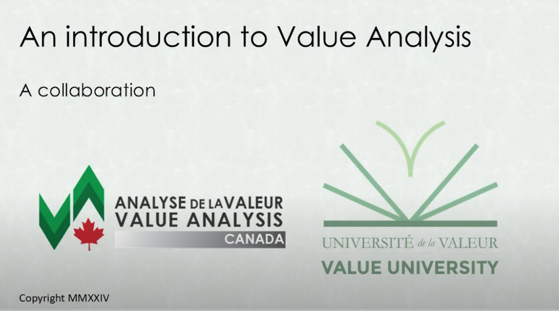 2023 Virtual Value Symposium October 3,4,5 Join Value Analysis Canada for a Virtual conference on how value management success stories in getting big things done through value management. Each day we will highlight how Value Management /Value An...